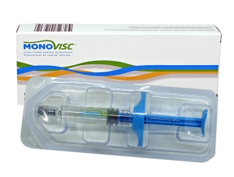 Monovisc (Sodium Hyaluronate) is a single-injection viscosupplement used for the treatment of pain in osteoarthritis (OA) of the knee. It is manufactured from ultra-pure hyaluronic acid, which is a component of the synovial fluid of a healthy knee. Hyaluronate works by acting as a lubricant and shock absorber in the joint, helping the patient move the knee smoothly with less pain. Monovisc is usually used in patients who have not responded to other treatments such as acetaminophen, exercise or physical therapy. Monovisc is injected by the doctor into the affected joint usually once a week. Other alternative treatment also includes Synvisc and Orthovisc.
